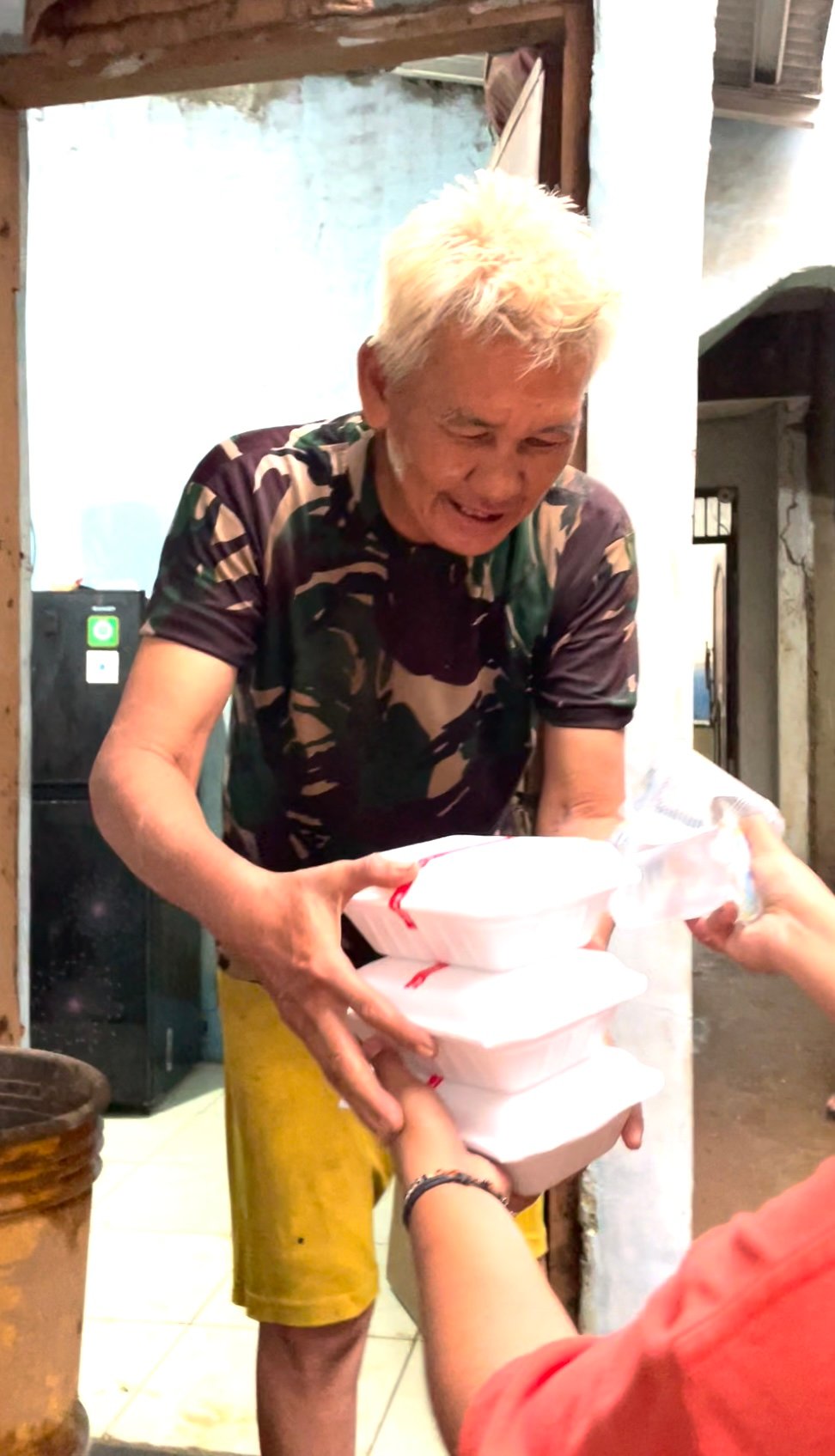Pada kegiatan ini kami berinisiatif untuk membagikan uang tunai dan makansiang kepada orang-orang yang membutuhkan.